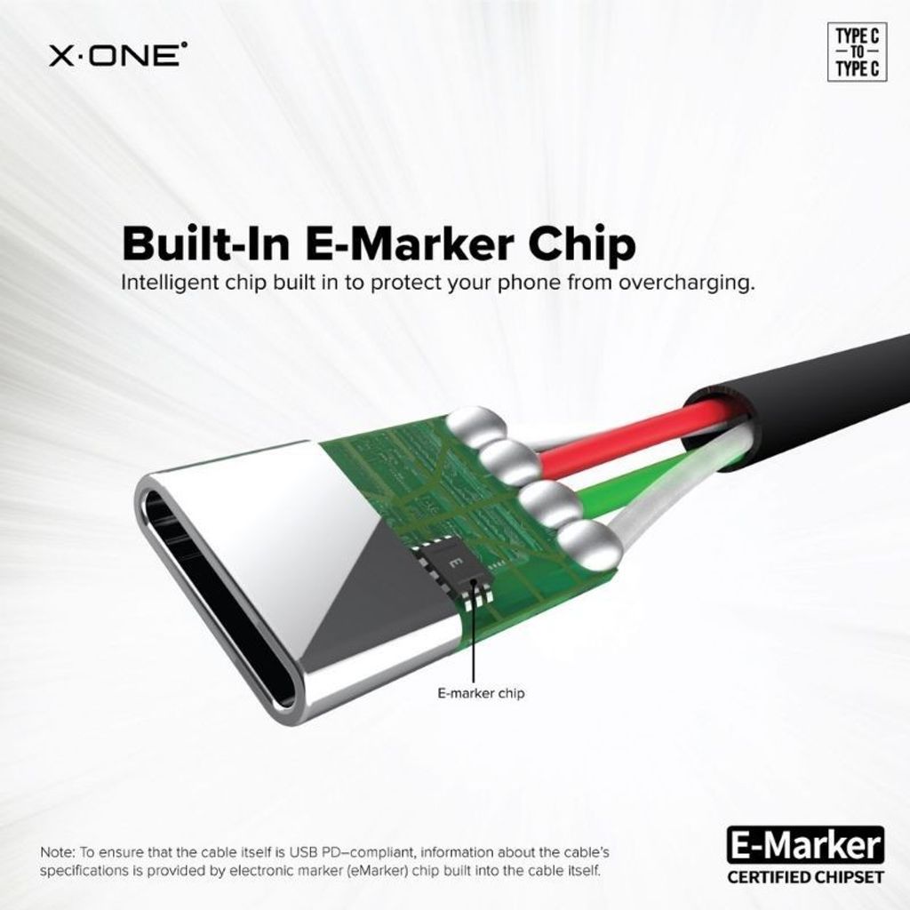 -Built-in E-marker chip. Intelligent chip built in to protect your phone from overcharging.